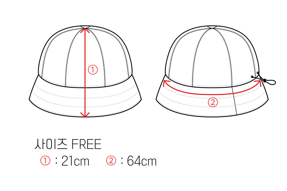 사이즈 : 아래 그림 참조 (둘레 - 64cm / -4~5cm 조여서 조절 가능)