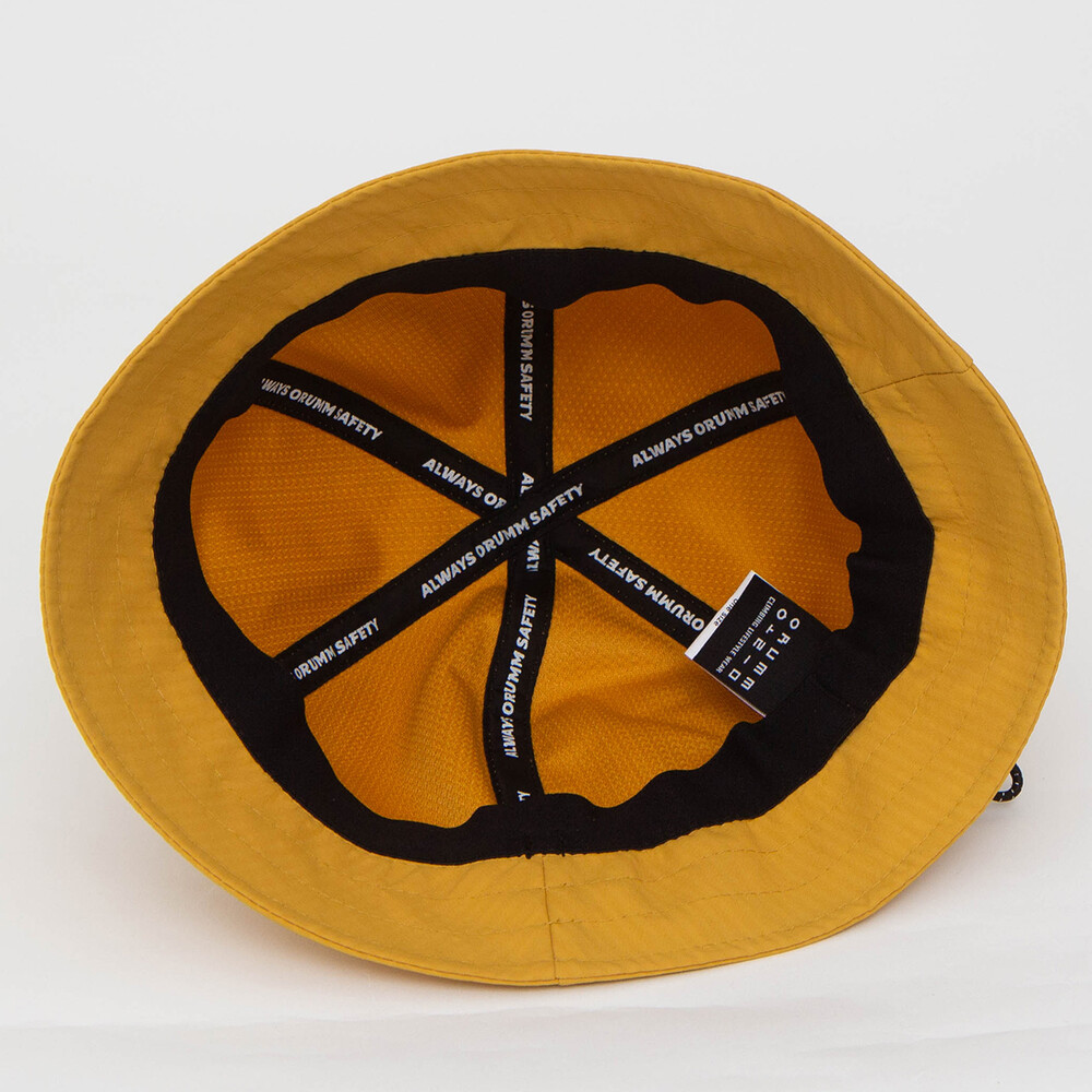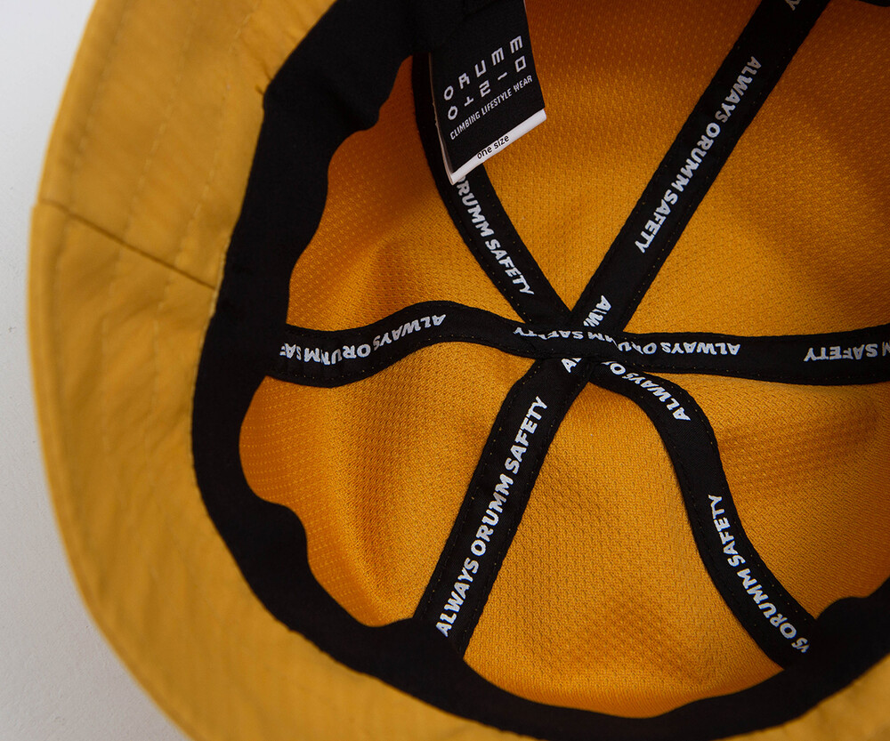 -모자 안쪽 절개 부분에 바인딩처리 하여 깔끔하게 봉재하였습니다. Always orumm safety 라는 문구를 프린트하였습니다.