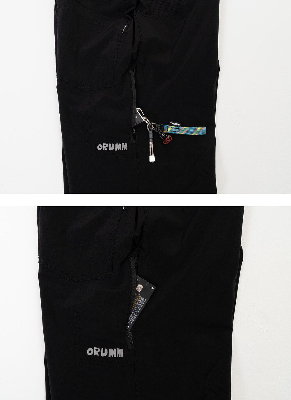 오른쪽 허벅지 뒤쪽으로 지퍼주머니를 넣어 하네스 착용 후에도 작은 소집품 수납이 용이하며, 움직임 또한 편하게 디자인 하였습니다.