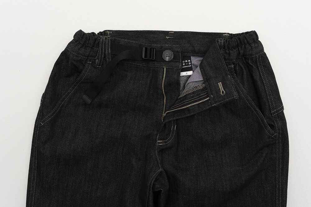 기존의 면 100% 데님의 경우 인디고 다잉으로 인해 물 빠짐이 심하고 생지 특성상 매우 뻗뻗하여 오랜 피팅으로 길을 들여야 하는 단점이 있습니다.