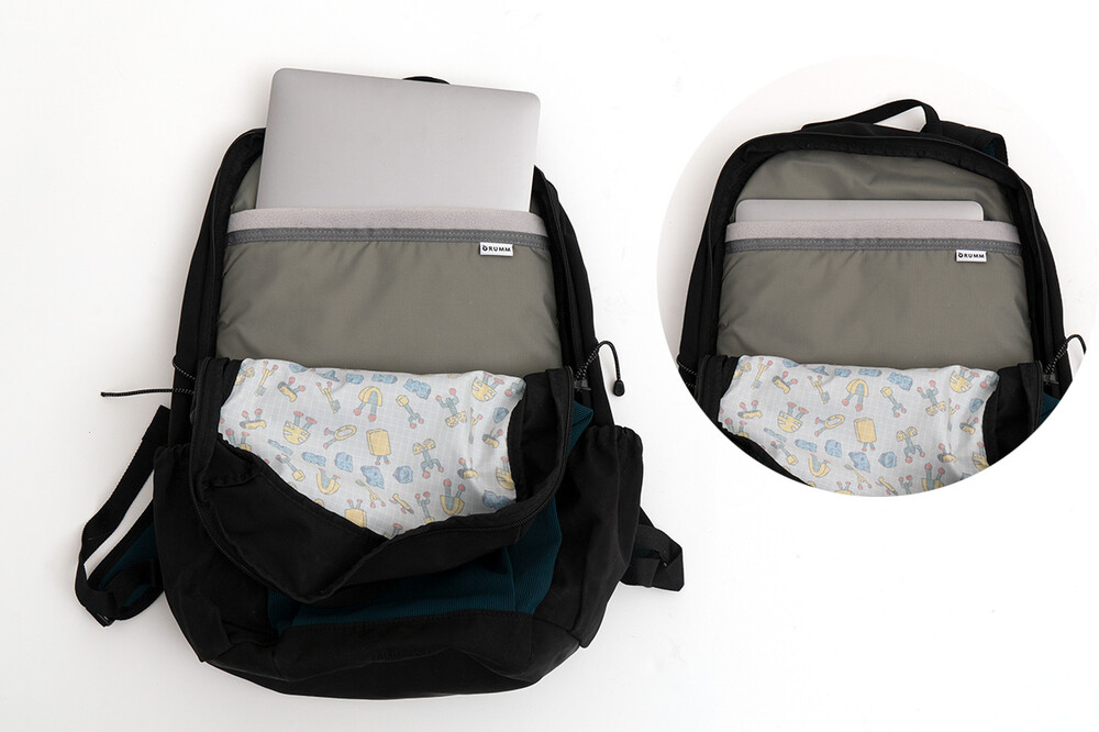 가방 안쪽 뒷면에는 부드러운 플리스와 PE 3T로 노트북을 수납 할 수 있는 칸을 만들었습니다.