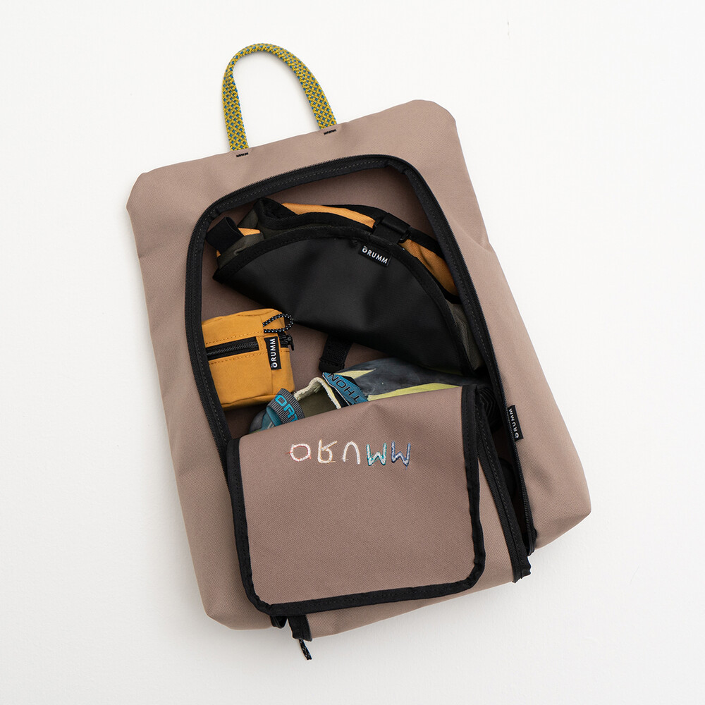 폐자일을 활용한 손잡이를 달았으며, 바텍으로 튼튼하게 마감하였습니다. 오름 자수로고가 각인되어 있습니다.