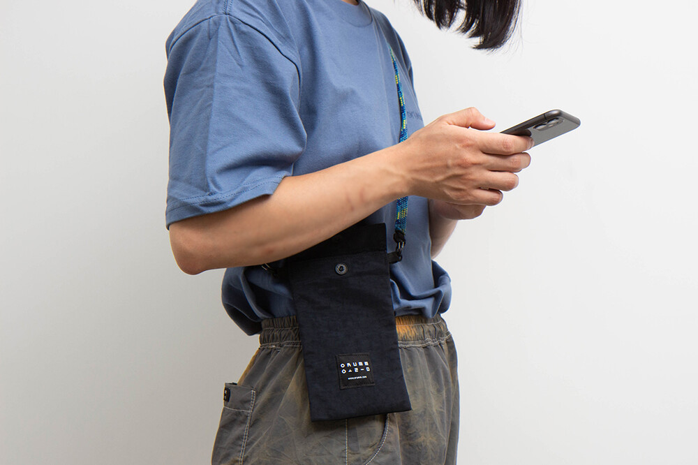 수명이 다한 클라이밍로프를 깨끗하게 세탁 한 뒤 속심제거한 끈을 활용한 폰파우치 입니다.